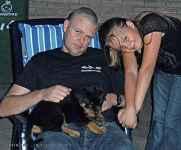 De afscheidsfoto's zijn voorzien van de stamboomnaam in de kleur van het bandje dat deze pup in het nest droeg.