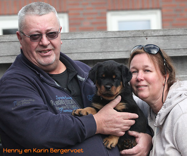 De afscheidsfoto's zijn voorzien van de stamboomnaam in de kleur van het bandje dat deze pup in het nest droeg.