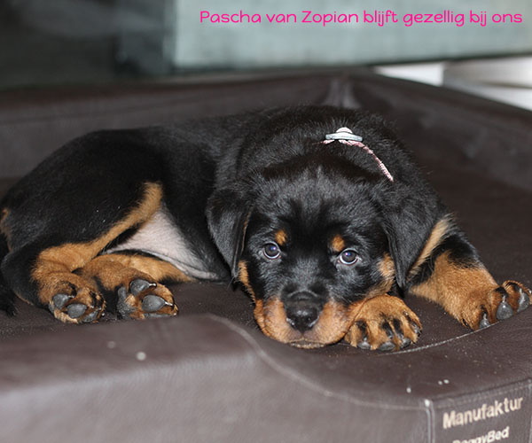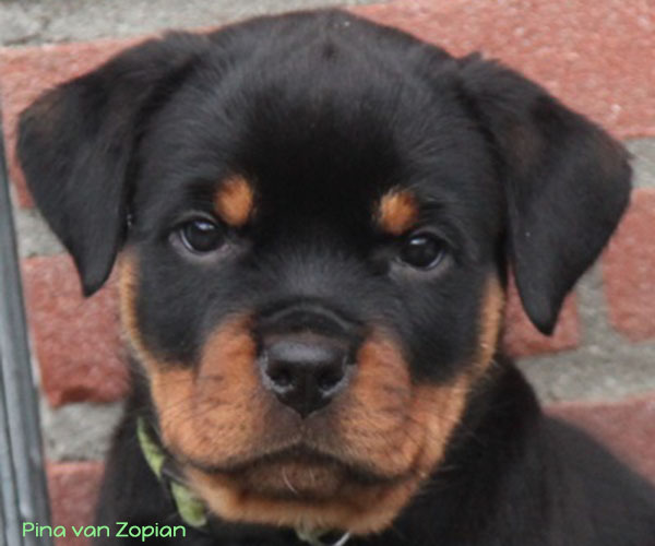 De afscheidsfoto's zijn voorzien van de stamboomnaam in de kleur van het bandje dat deze pup in het nest droeg.